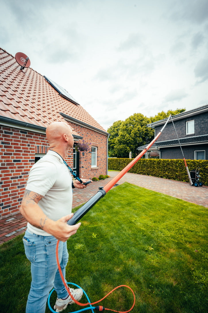 Dachreinigung ohne Leiter leicht gemacht: Die ROOF WAND!! Osa-shop.de ermöglicht sicheres Arbeiten vom Boden, schützt die Ziegel und liefert mit Bio Clean eine langanhaltend saubere Lösung.